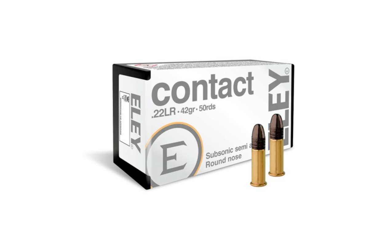 ELEY Contact — ქვებგერითი ნახევრად ავტომატური .22LR ვაზნა, შექმნილი უკიდურესი სიზუსტისთვის. ვაზნები ხასიათდება უფრო დაბალი ხმით და მინიმალური უკუცემით. მახასიათებლები: ტყვიის მასა: 42 გრეინი , ზედაპირი: დაფარული სპეციალურად ფორმულირებული პარაფინის ცვილით.