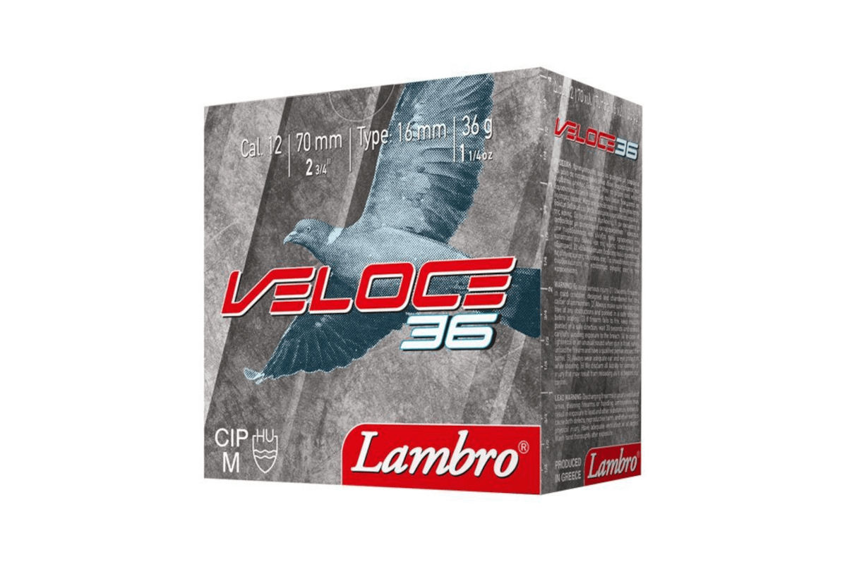 Lambro Veloce 12/70 — მაღალი ხარისხის, მრავალმხრივი ვაზნა, რომელიც შექმნილია თანმიმდევრული სროლისა და საიმედო მუშაობისთვის. 36 გრამიანი მუხტით, 415 მ/წმ ლულის სიჩქარით (V/1მ) და Pmax 680 ბარით, Veloce შესანიშნავად მუშაობს სანადირო სიტუაციების ფართო სპექტრში, ამავდროულად თავსებადია ყველა 12/70 თოფთან. შეფუთვაში 25/250.
