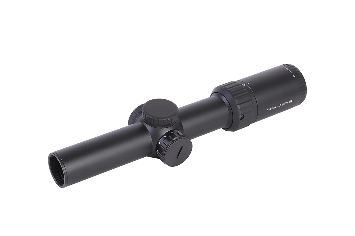 TOWA 1.2-6×24 IR არის ბიუჯეტური LPVO (დაბალი სიმძლავრის ცვლადი ოპტიკა), რომელიც მრავალფუნქციურობას სთავაზობს როგორც ახლო, ასევე საშუალო დისტანციებზე სროლისთვის. 30 მმ-იანი თვითმფრინავის ალუმინის მილით დამზადებული, ის მსუბუქი და ამავდროულად გამძლეა. მას აქვს მეორე ფოკუსური სიბრტყის მინით გრავირებული გერმანული #4 ბადე, რომელიც წითელ და მწვანე ფერებშია განათებული და სიკაშკაშის ხუთი პარამეტრით უზრუნველყოფს სწრაფ გადაღებას დაბალი განათების პირობებში. ½ MOA დაწკაპუნების რეგულირებით, თვალის დიდი განლაგებით და კომპაქტური 24 მმ-იანი ობიექტივით, ის AR სტილის პლატფორმების ან კომპაქტური კარაბინებისთვის შესანიშნავი ვარიანტია.